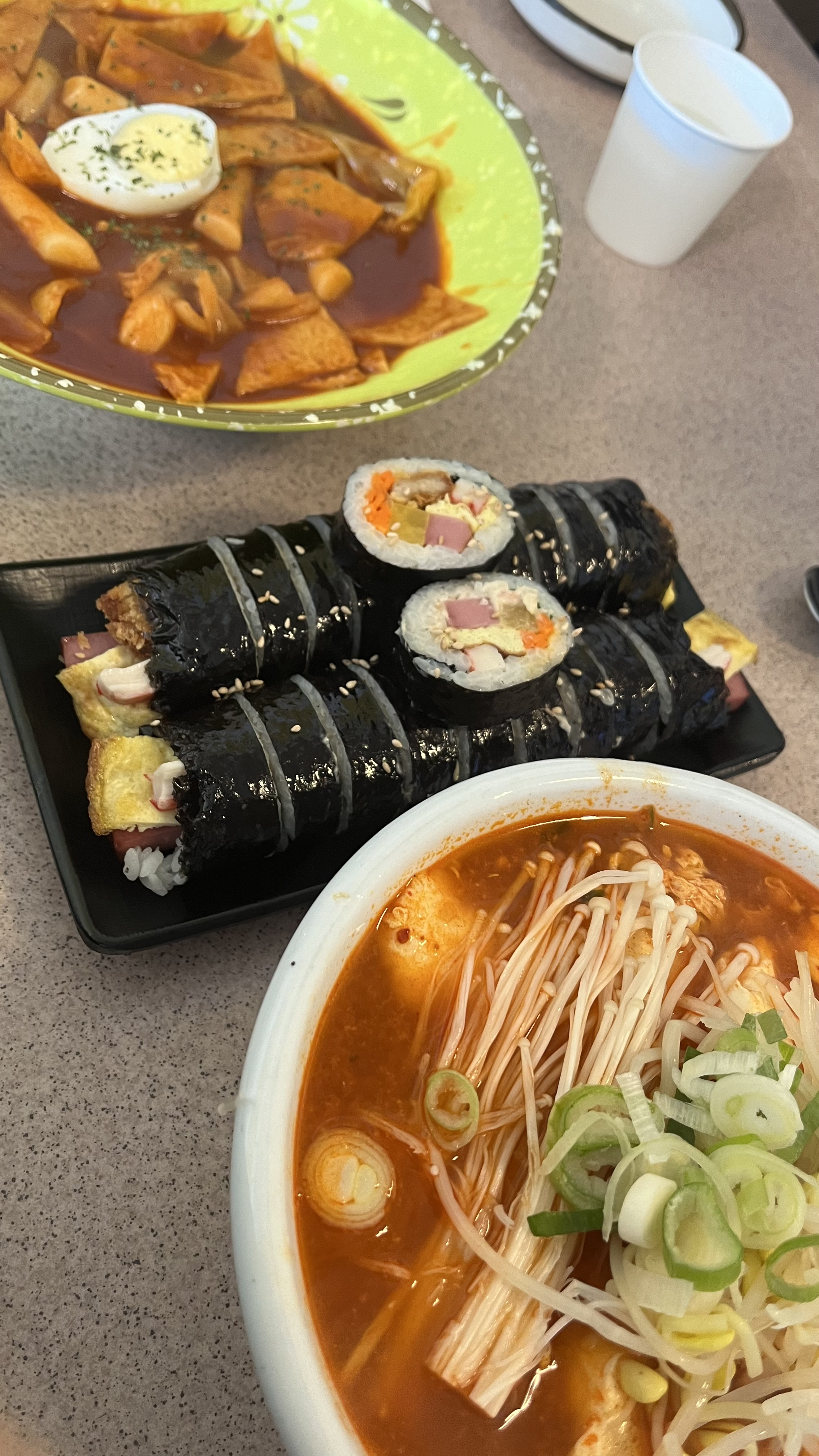 이곳은 아담하지만 살짝 고가의 부자 분식집입니다. 여기서는 그냥 아무것도 보지 마시고 순두부라면을 드시면 됩니다. 제가 라볶이도 먹어보고 김치찌개도 먹어봤지만 그냥 묻지도 따지지도 말고 순두부라면을 드시는 걸 추천드립니다. 라면이 되게 먹을 때 고급스러운 느낌을 받으실 수 있습니다. 제가 김밥천국이나 김가네 이런 곳에서 라면 자주 먹었는데 제가 먹은 라면 중 제일 맛있었습니다. 이거 먹으러 학교 가는 동기도 있었으니 꼭 한번 드셔보시길 추천합니다.